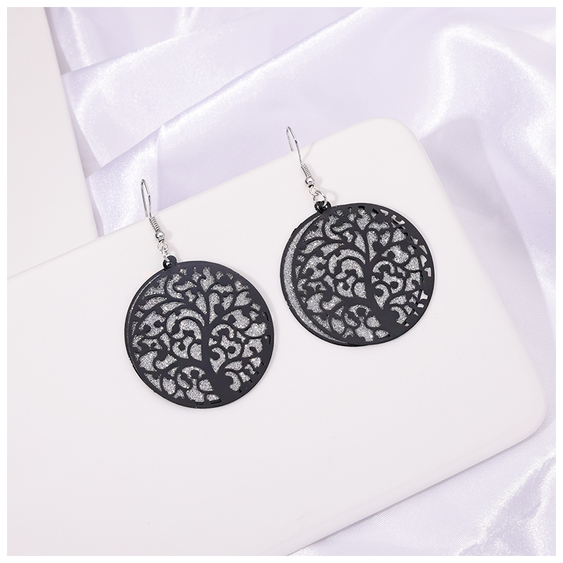 E2402 National Style Retro Women's Earrings Simple Hollow Multi-Layer Leaves European And American Popular Tassel Earrings Cross-Border